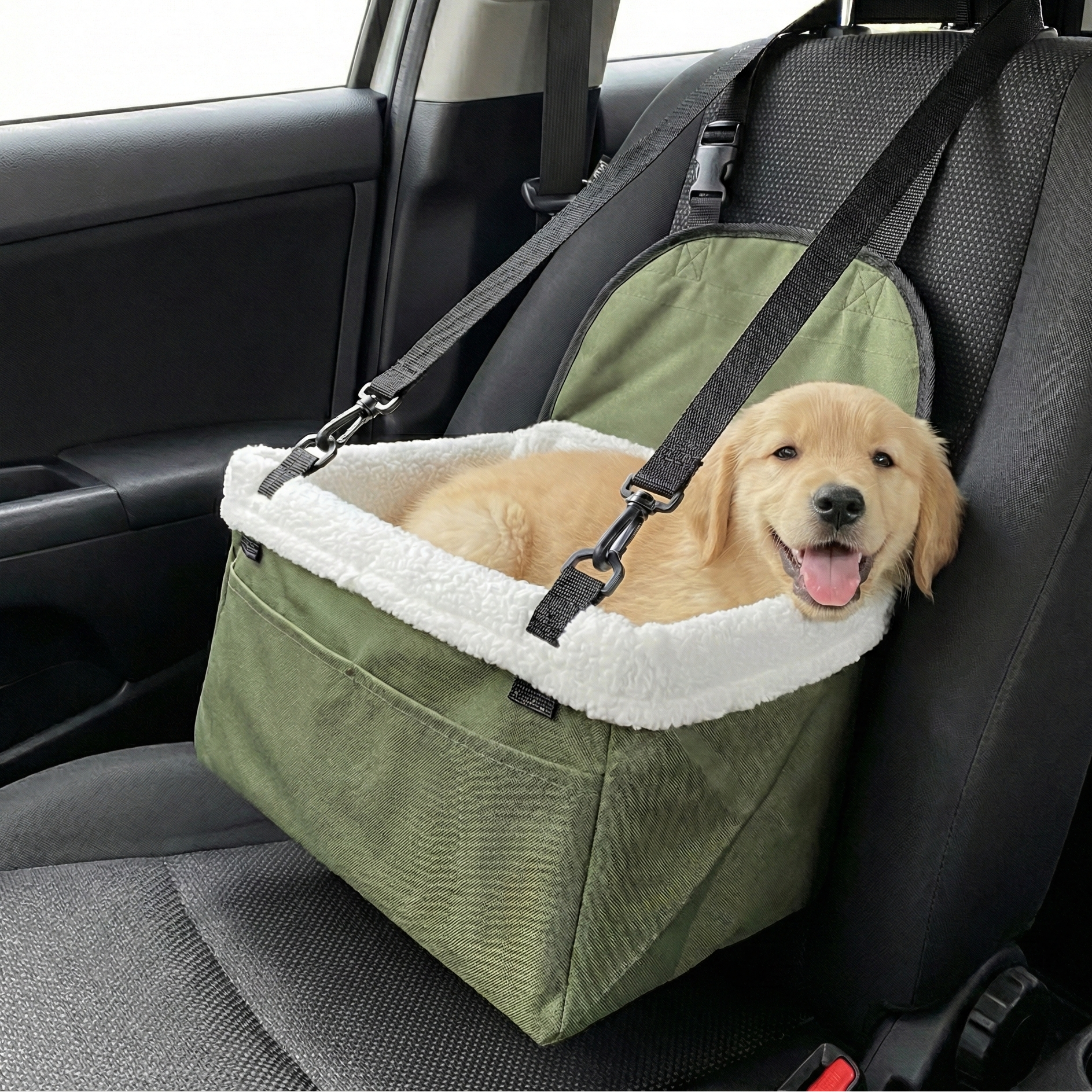 Este asiento está diseñado específicamente para razas pequeñas y cachorros, proporcionando un espacio delimitado que evita saltos peligrosos y distracciones al volante.